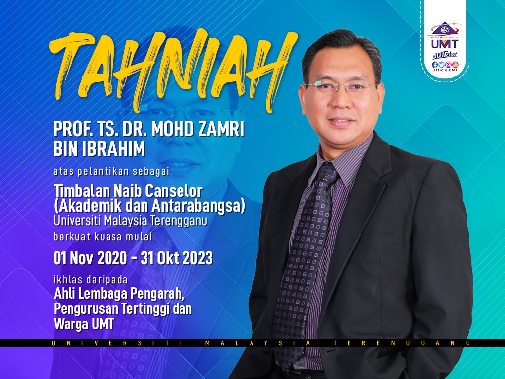 Tahniah Prof. Ts. Dr. Mohd Zamri b. Ibrahim atas Pelantikan Timbalan Naib Canselor (Akademik dan Antarabangsa) UMT