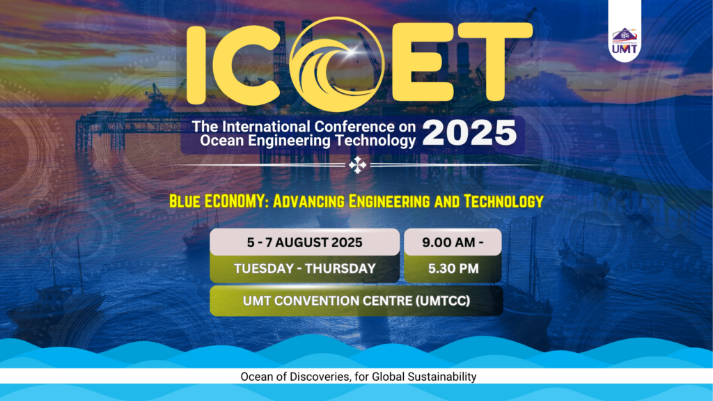 ICOET 2025 ASSALAMUALAIKUM WBT DAN SALAM SEJAHTERA SUKACITA DIMAKLUMKAN UMT AKAN MENGADAKAN INTERNATIONAL CONFERENCE ON OCEAN ENGINEERING TENCHNOLOGY (ICOET 2025) YANG AKAN BERLANGSUNG PADA OGOS 2025. DIJEMPUT PENYELIDIK DAN PARA PELAJAR MERAIKAN DAN MENYERTAI PERSIDANGAN INI. #UMT#CONFERENCE#OCEAN#OCEANTECHNOLOGY#ENVIRONMENTALTECHNOLOGY#INFORMATICS#BLUEECONOMY